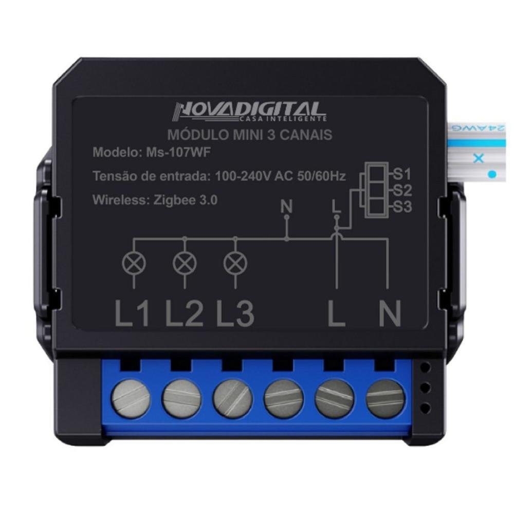 O Módulo Zigbee Mini Inteligente 3 Canais Preto Novadigital MS-107ZB é uma solução avançada para a automação de dispositivos elétricos, oferecendo controle inteligente de até três circuitos de forma independente.