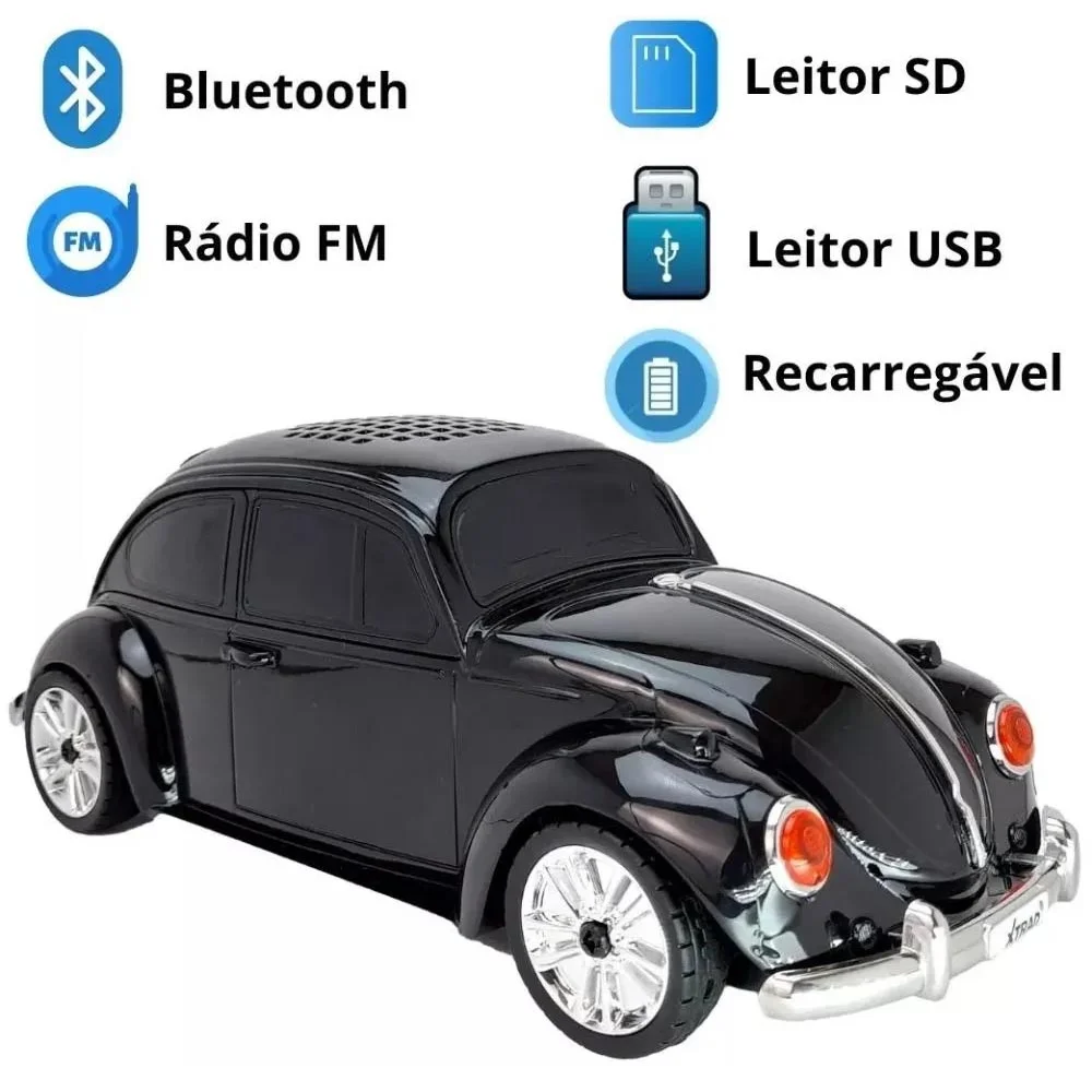 Caixa De Som Bluetooth Portátil Miniatura De Fusca (preto)