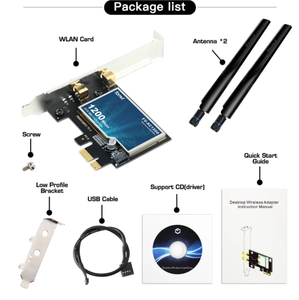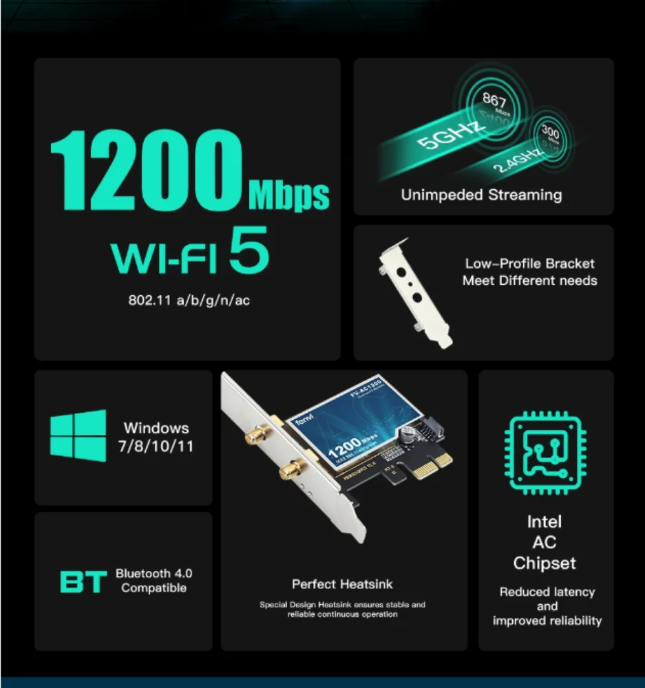 Melhore sua conexão com o adaptador wi-fi fenvi 1200mbps pcie fv-ac1200! liberte dos fios e embaraços! alta velocidade: desfrute de velocidades de até 1200mbps para uma navegação rápida e sem interrupções.