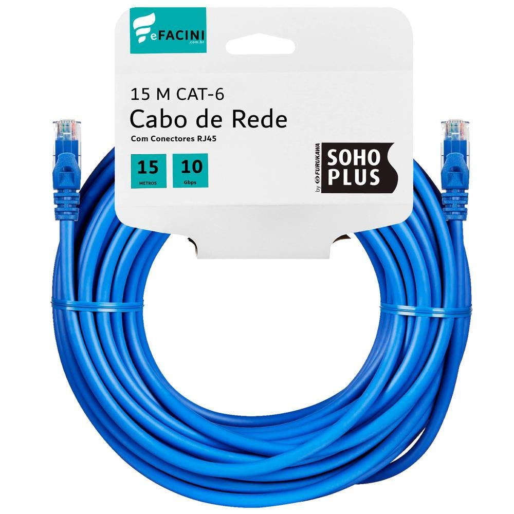 Cabo de rede efacini cat6 furukawa 100% cobre, certificado anatel - 15 metros