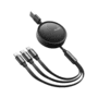 Descrição: cabo carregador e dados retrátil 3in1 iphone tipo c micro usb 3a super fast charging 1,2m preto