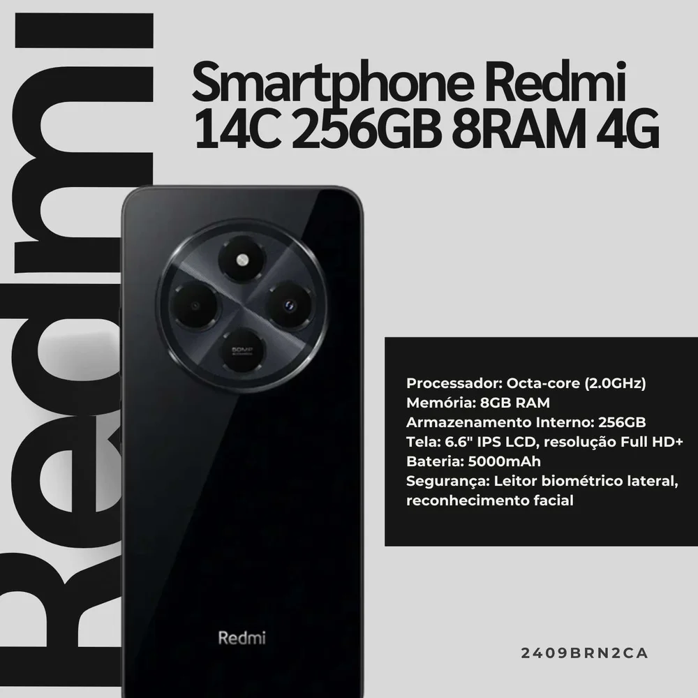 Celular Smartphone Xiaomi Redmi 14c Global 256gb 8GB Ram Dual Sim Tela 6.88" - Preto