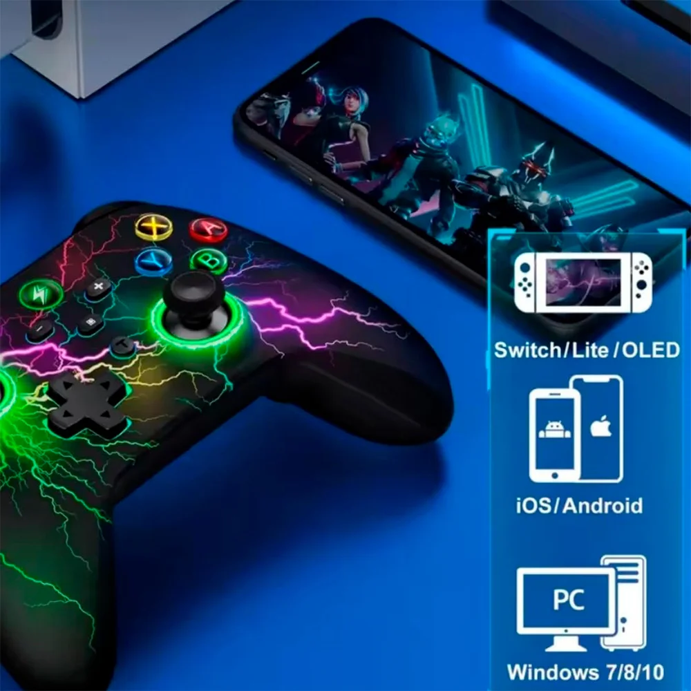 controle de jogos para nintendo switch (lite/oled) /ios/android e pc efeito luminoso com 3 modos de acendimento e 9 cores botões programáveis bateria interna recarregável bateria: 800mah