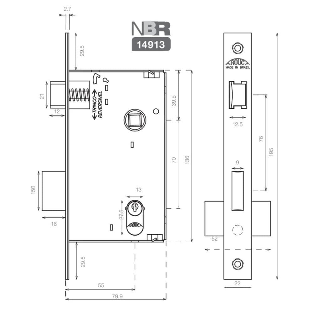 características da fechadura para porta de banheiro com roseta escovada de 55mm da linha elle arouca: