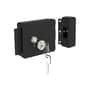 - fechadura elétrica 12v com cilindro bipartido py e botão de destravamento.