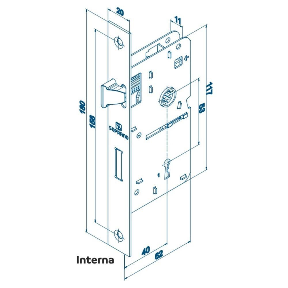 Fechadura interna paliway reta roseta quadrada ros24 cromado 40mm (40x53) soprano