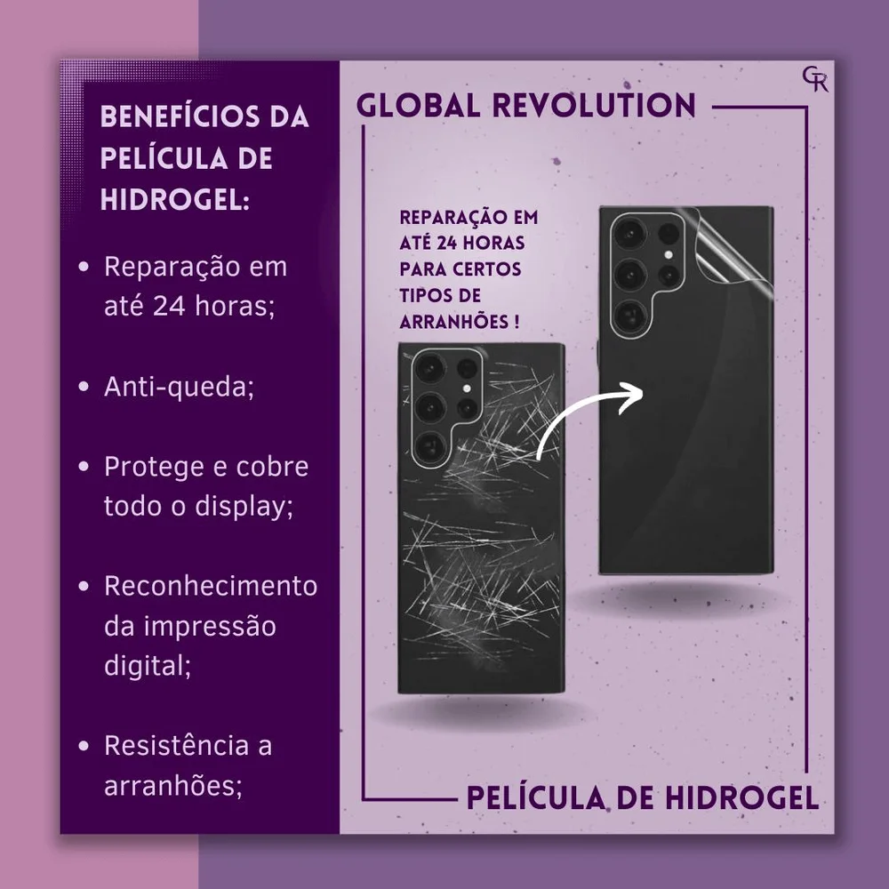 Características película\n \n *** é a única tecnologia que permite o uso de desbloqueio da\n tela pelo leitor digital ultrassônico do aparelho ***\n \n a película de hydrogel, possui uma série de vantagens sobre as\n películas de vidro. Pois possuem nano partículas que auto-reparam de pequenos\n riscos gerado por chaves, moedas ou até mesmo unha dos dedos assim se\n mantendo nova por muito mais tempo comparado com a de vidro que trinca\n facilmente.\n a película de hydrogel, possui qualidade anti queda, pois a película\n de gel distribui a energia de impacto.\n além de oferecer grande proteção, a de gel também se adere muito\n melhor a tela, é flexível que se ajusta perfeitamente as telas curvadas. E ainda\n não compromete a sensibilidade do toque de tela e nem mesmo a qualidade de\n imagem da tela diferente da de vidro.\n \n - permite desbloqueio pelo sensor digital;\n - auto-reparo de riscos em até 48hs;\n - crystal transparente que proporciona efeito hd;\n - ultra-fino sem comprometer o toque a tela;\n - camada protetora oleofóbica;\n - cobertura completa da tela;\n - encaixe perfeito.