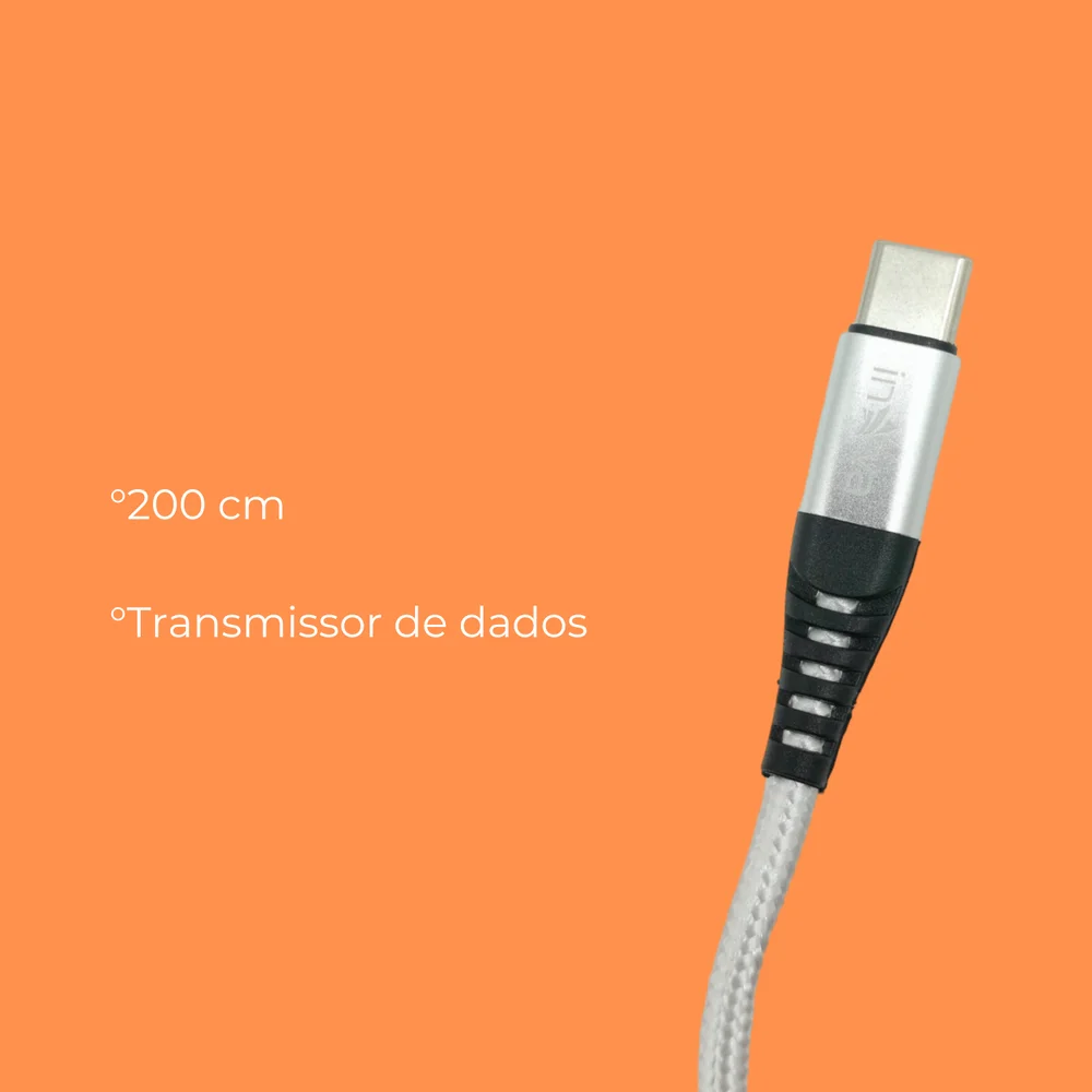 Cabo Usb De Dados 3.4a Carregador Turbo Tipo C Tpc 2 Metros, Reforço antiquebra