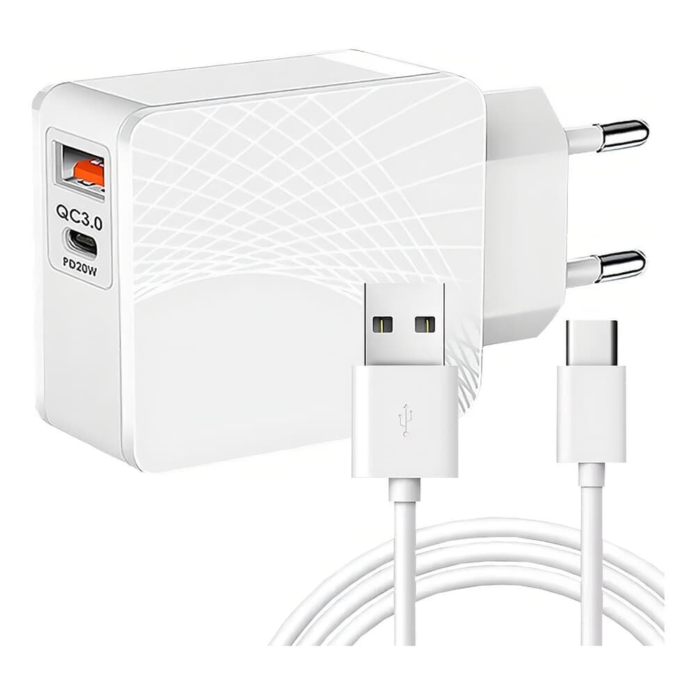 Carregador para celular com duas entradas, sendo uma no padrão "normal (usb a)" e uma no padrão fast charge pd. O carregador já acompanha o cabo que vai funcionar exatamente no modelo do seu telefone, portanto, veja atentamente o modelo do seu smartphone. Caso você já tenha um cabo, também poderá utilizá-lo normalmente no carregador. Para carregar periféricos (exemplo: mouse, caixinhas de som, brinquedos, etc... Use sempre o padrão usb-a) e para telefones poderá usar o tipo pd fast charge normalmente. produto do tipo compatível, ou seja, não tem nenhuma relação com o fabricante do smartphone. Cansado de ficar esperando seu telefone carregar? Então pronto, seu problema está resolvido com essa solução incrível. Essa tecnologia nova detecta exatamente quanto de potência deve ser enviada em cada extremidade do smartphone, evitando super aquecimento ou perda de performance. colocamos apenas o nome de modo específico para que todos os clientes, mesmo os leigos tenham condição plena de entender a funcionalidade do produto e a compatibilidade, sendo um produto de marca genérica. o envio (postagem) é muito rápido, em cerca de 12 horas úteis a contar da confirmação do pagamento pela plataforma, de segunda-feira a sexta-feira em horário comercial. ficha técnica: - potência min: 20w - turbo: sim - acompanha cabo: sim - tipo de fonte: pd (fonte inteligente) - anatel: 105432214466 - cor: branco