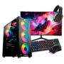 Placa-mãe\nchipset: amd b450 socket: am4 memória: ddr4 rede: 10/100/1000 mbps\nprocessador\nmarca: amd modelo: ryzen 5 5500 nº de núcleos: 6 nº de threads: 12 velocidade base: 3.6 ghz velocidade turbo: 4.2 ghz gráfico integrado: não\nplaca de vídeo\nmodelo: geforce rtx 3060 nº de núcleos: 3584 (nvidia cuda) velocidade base: 1.32 ghz velocidade turbo: 1.78 ghz interface de memória: 128-bit\nmemória ram\ncapacidade total: 16 gb (2x 8 gb) velocidade: 3.200 mhz tecnologia: ddr4\narmazenamento\ntipo: ssd formato: 2,5" (100 x 69,9 x 7 mm) interface: sata iii capacidade: 480 gb\nfonte\npadrão: atx (12 v) dimensões: 150 x 85 x 140 mm potência de saída: 600 w certificação: 80 plus tecnologia: pfc ativo tensão de entrada: 110 ~ 220 v (incluso cabo de energia)\ngabinete\nmodelo: gabinete gamer com tela mesh tipo: mid tower cor: preto (com vidro temperado transparente) suporte para radiador: não suporte para ventoinha: frente: 3x 120mm (incluso) | traseiro: 1x 120mm (incluso)\nmonitor\ntamanho da tela: 21.5" polegadas resolução: 1920x1080 taxa de atualização: 75hz\nkit gamer\nmouse: gamer usb teclado: gamer usb headset: gamer p2\nsistema operacional\nedição: windows 10 pro x64 (versão trial)\ngarantia\n12 meses: 3 meses de garantia direta conosco e 9 meses de garantia com o fabricante.