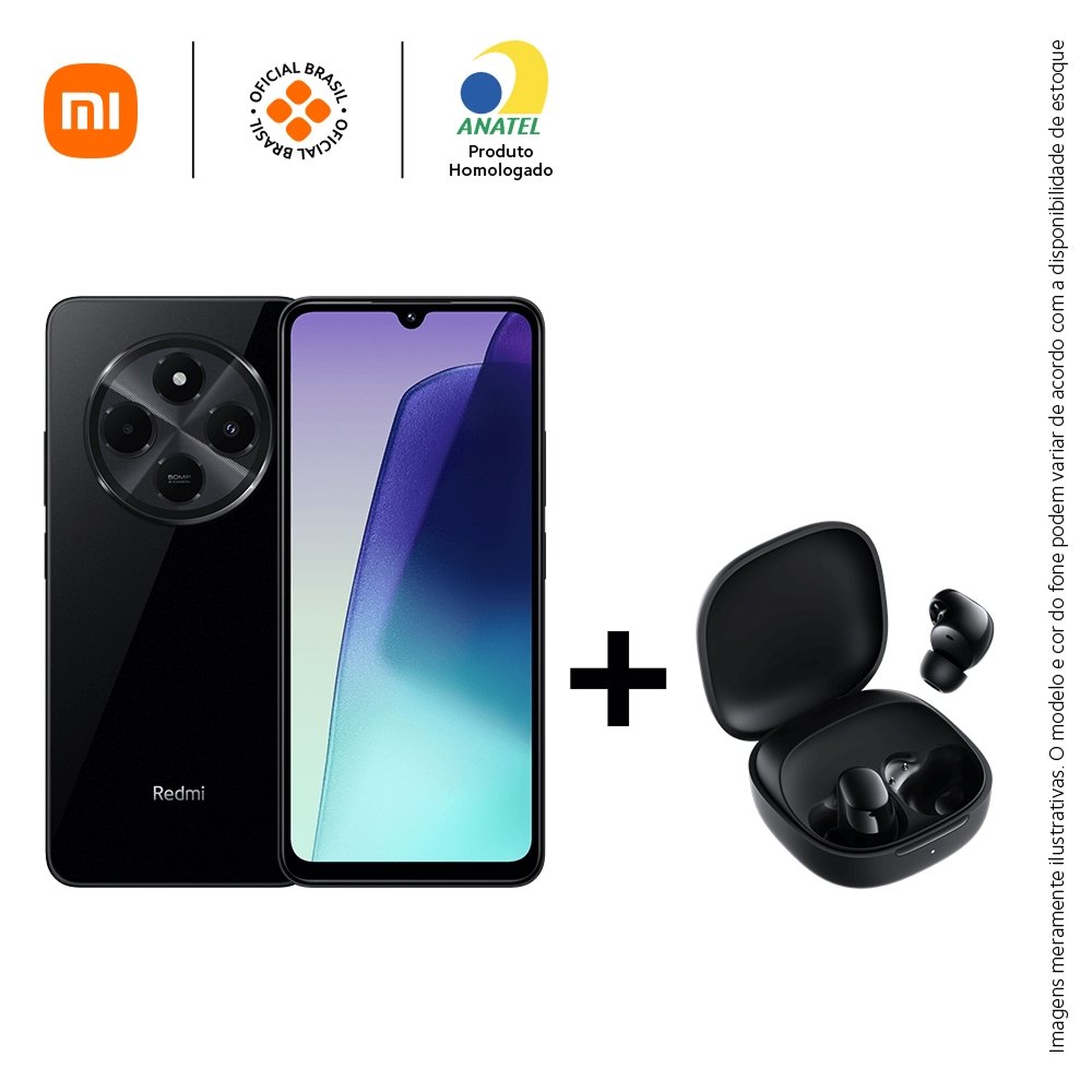 Kit Smartphone Xiaomi Redmi 14C BR, 256GB, 4+4GB RAM Virtual, Octa Core, Tela 6.88" 120Hz, Câmera 50MP, Bateria 5160mAh, Preto + Fone Bluetooth Xiaomi - CMB401PRE-F