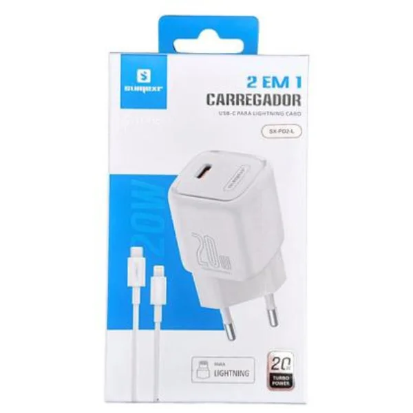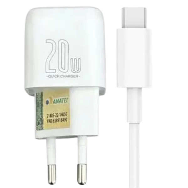 -Carregador Turbo 20w USB Type C 2 em 1:_x000D_ _x000D_ _x000D_ Carregue rapidamente o seu dispositivo sem danificar a bateria! Com sistema de gerenciamento automático de potência de carregamento!_x000D_ Pequeno, leve e discreto, o carregador compacto turbo é compatível com todos os modelos PD de alta performance._x000D_ _x000D_ Conteúdo da Embalagem:_x000D_ _x000D_ - 1 Carregador de parede compacto Turbo_x000D_ - 1 Cabo com conector USB Tipo C_x000D_ _x000D_ - Tensão de entrada:_x000D_ Bivolt automático (127/220 V)_x000D_ _x000D_ - Corrente de entrada:_x000D_ 0,15 A - 50/60 Hz_x000D_ _x000D_ - Tensão de saída:_x000D_ 5 V_x000D_ _x000D_ - Corrente de saída:_x000D_ 1 a 3 A (automático)_x000D_ _x000D_ - Tempo de carregamento:_x000D_ de 0,5 a 2 Horas (dependendo do modelo de aparelho)_x000D_ _x000D_ - Certificações:_x000D_ CE, FCC, ROHS (Ambiental)_x000D_ _x000D_ - Cor:_x000D_ Branco_x000D_ _x000D_ - Material:_x000D_ Plástico ABS e outros_x000D_ _x000D_ - Peso líquido:_x000D_ 40 g_x000D_ _x000D_ Características de Cabo:_x000D_ _x000D_ - Modelo:_x000D_ USB Tipo C _x000D_ _x000D_ - Conector de entrada:_x000D_ PD Tipo C_x000D_ _x000D_ - Corrente suportada:_x000D_ 3A_x000D_ _x000D_ - Suporta transferência de dados:_x000D_ Sim_x000D_ _x000D_ - Certificações:_x000D_ CE, FCC, ROHS (Ambiental)_x000D_ _x000D_ - Comprimento:_x000D_ 100 cm_x000D_ _x000D_ - Cor:_x000D_ Branco_x000D_ _x000D_ - Material:_x000D_ PVC emborrachado e outros_x000D_ _x000D_ - Peso líquido:_x000D_ 15 g