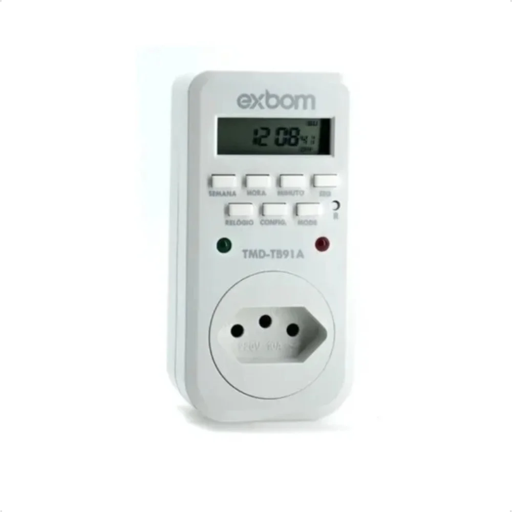 O temporizador digital foi desenvolvido para ligar e desligar automaticamente aparelhos elétricos ou eletrônicos com horários programados. O temporizador é um equipamento portátil e de fácil instalação, possui 8 programações diárias, basta ligar na tomada da rede elétrica em bivolt 110/220v, potencia em até 2200w ( 60hz) podendo por exemplo interligar 10 lampadas com 220 watts cada, dentre outro itens com capacidade até 2200w.o temporizador pode ser utilizado em:iluminação doméstica;simulação de presença em residências;bomba de piscina;aquecedores;irrigação de jardins;anúncios luminosos;controle de iluminação e bomba em aquário;televisão e rádio.especificaçãotensão: 127/220v~ 50/60hz bivolt automático.consumo standby: 1,6 w.plugue e tomada elétrica padrão nbr14136.programação: horas, minutos, segundos, diária e semanal.até 8 programações (10 on e 10 off).temperatura ambiente de operação: 0 a 40ºc.bateria interna recarregável ni-mh 1,2 v 80 ma.dimensão do produto : 116mm*59mm*71mm.