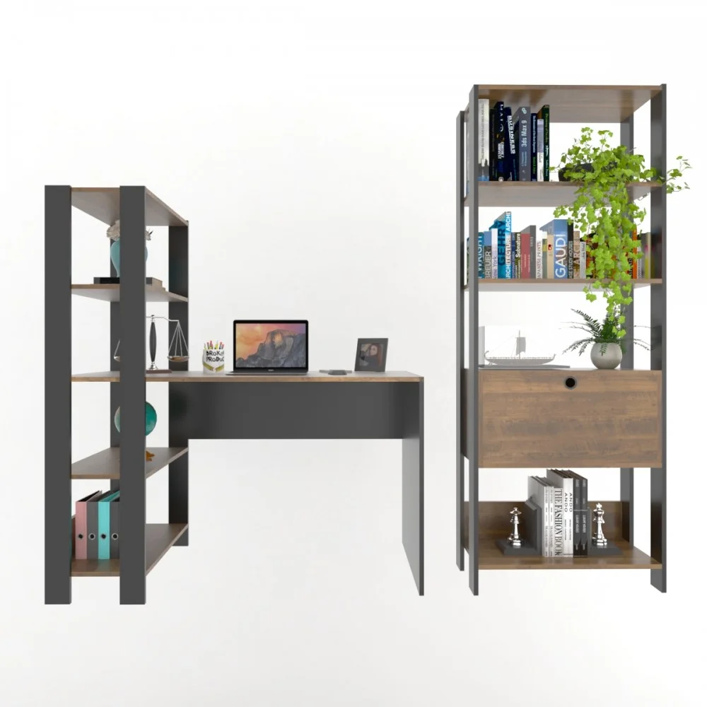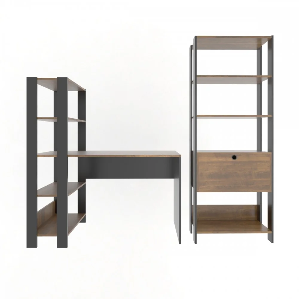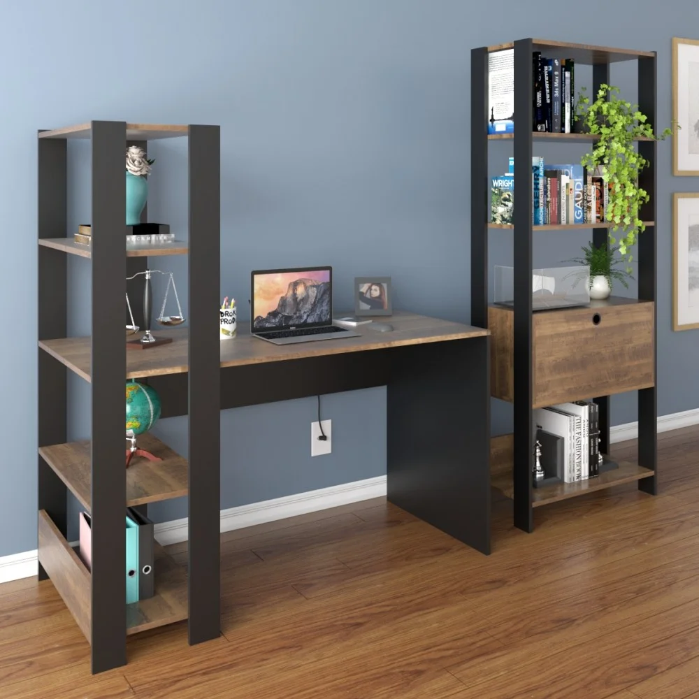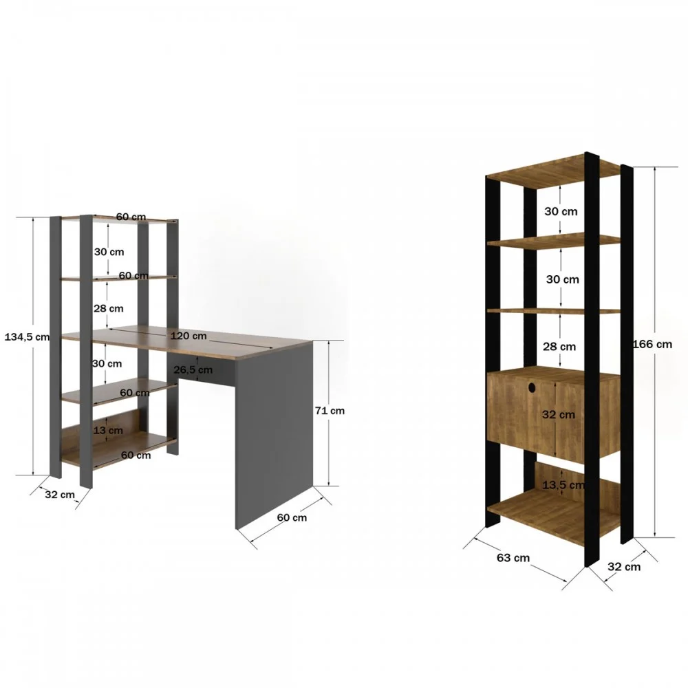 Escritório Completo Match 1 Porta Basculante 6 Prateleiras Pinho/preto - Pnr Móveis