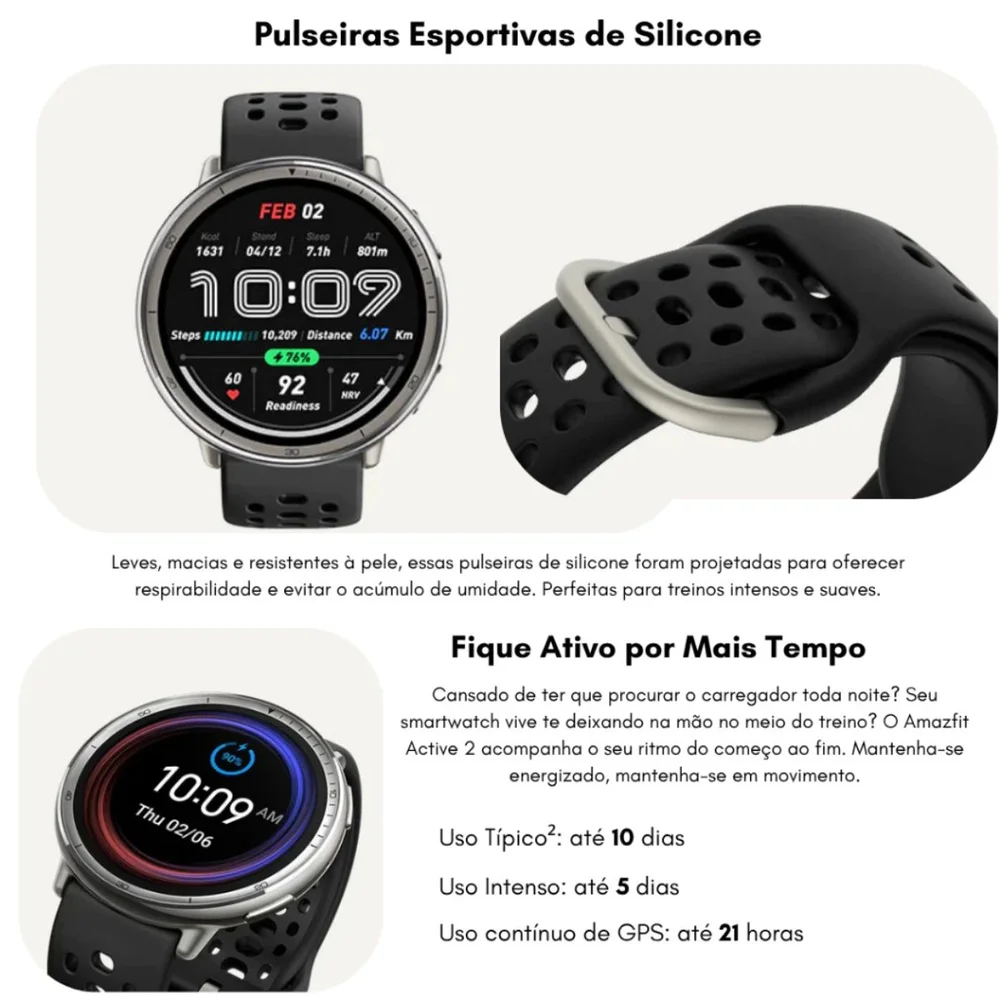 Smartwatch Amazfit Active 2 Round Preto - A2437 – Estilo, Saúde e Desempenho em um Só Relógio
