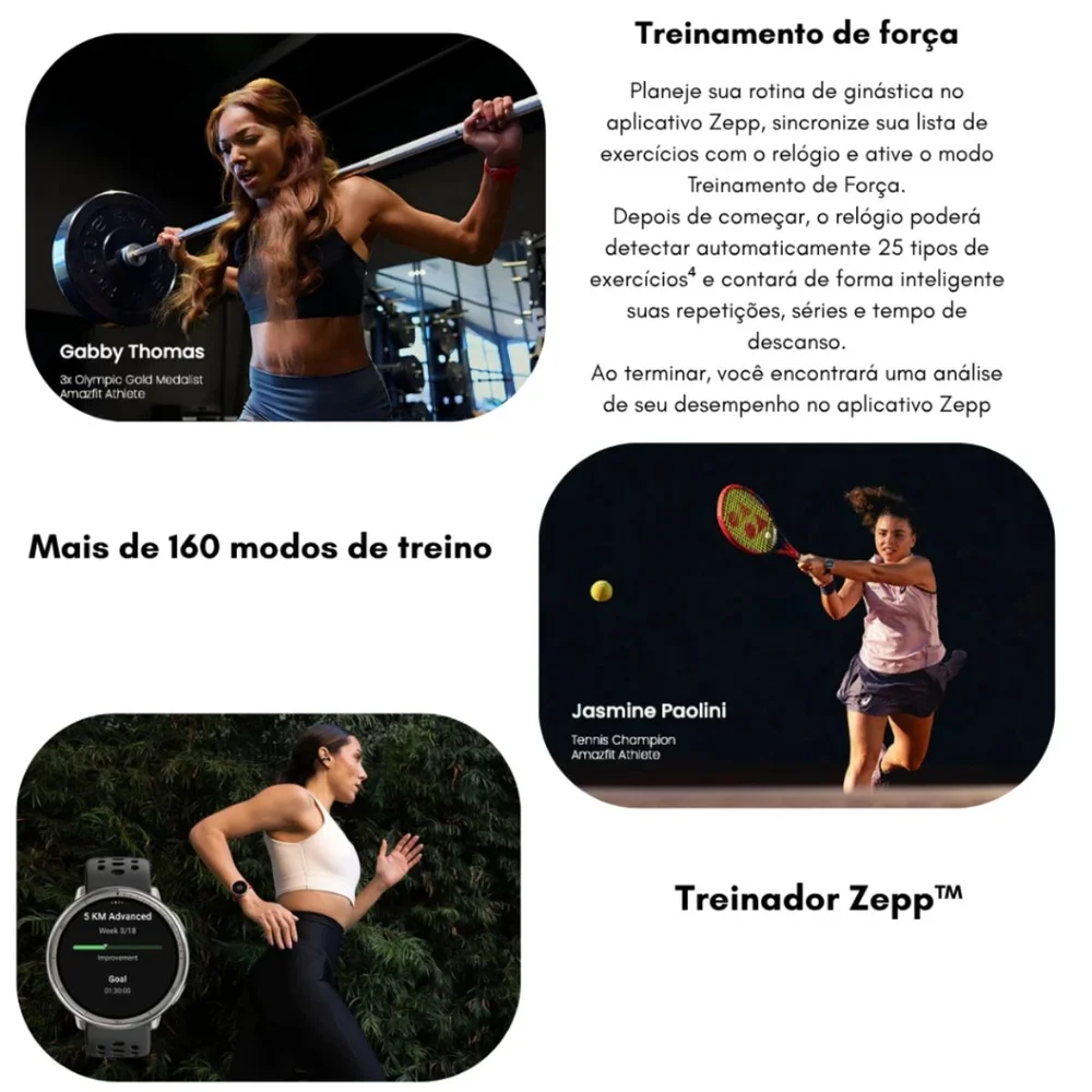 Mais de 100 modos esportivos, incluindo corrida, natação, artes marciais e muito mais