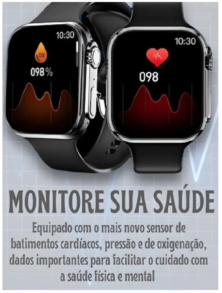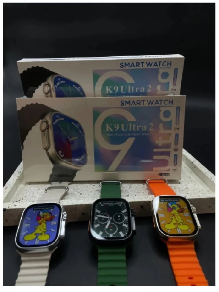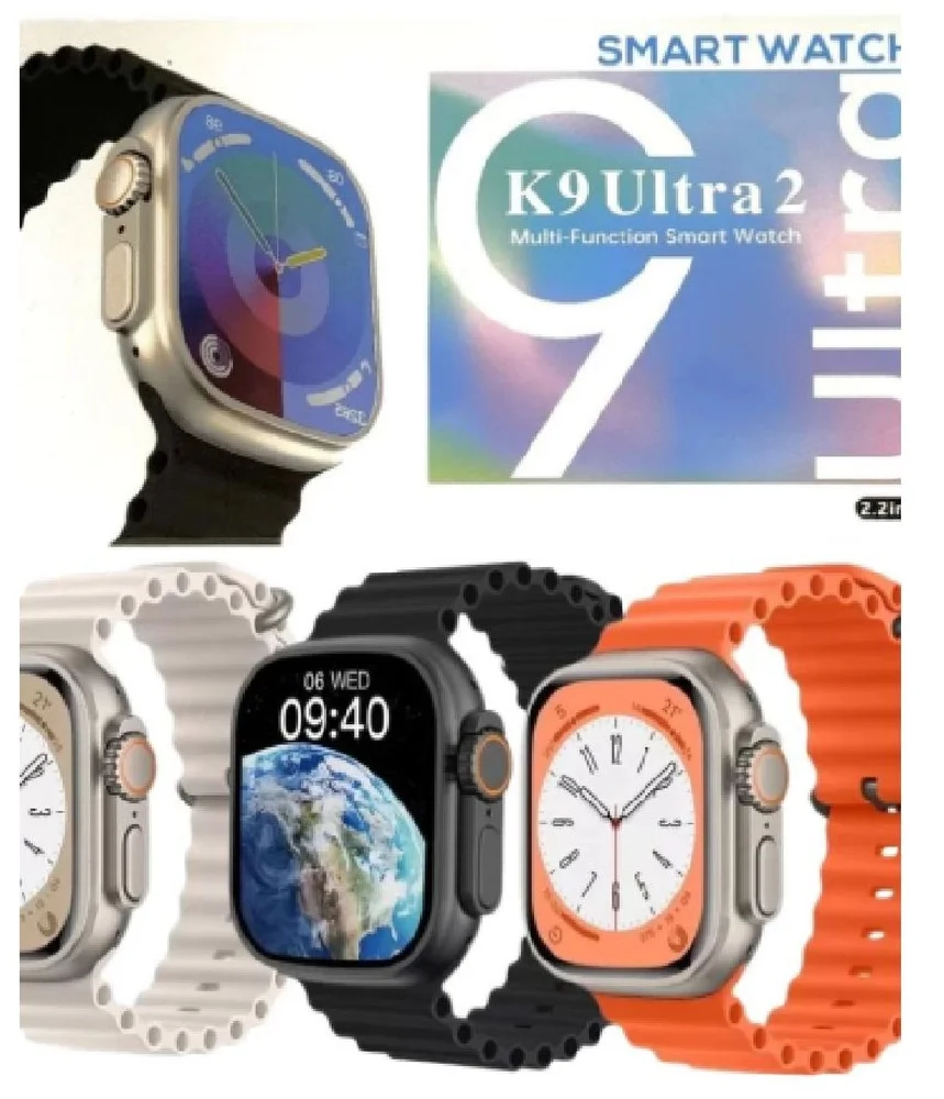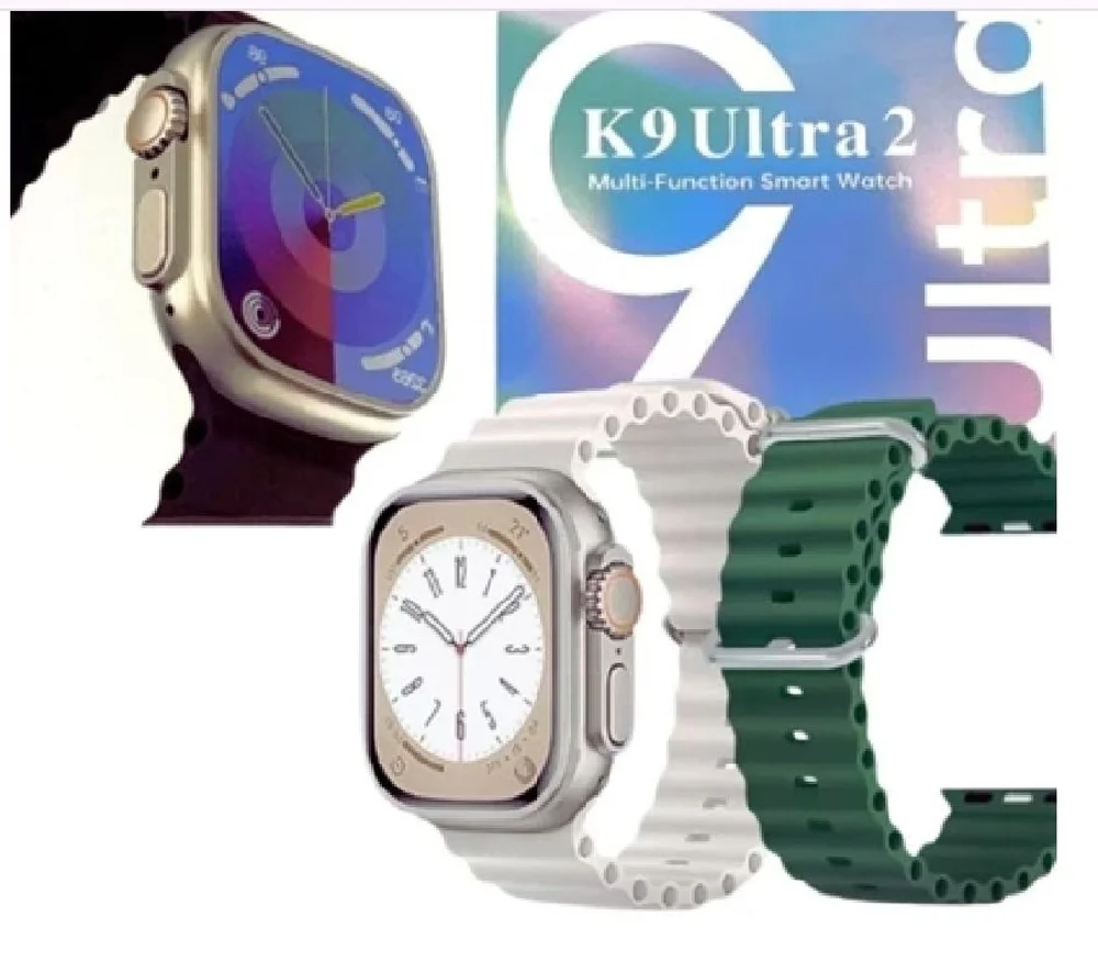 Smartwatch k9 ultra 2 c/ pulseira extra\n \n principais funções:\n - faz e recebe chamadas telefônicas\n - baixa foto ou qualquer imagem na tela + foto em movimento\n - baixa centenas de mostradores\n - botão lateral giratório, interage com as funções do relógio\n - função relógio de cabeceira, sensor de tela com hora horizontal ou vertical\n - vários idiomas, incluindo português\n - troca pulseira\n - carregador por indução\n - recebe mensagens das redes sociais\n - função saúde\n - vários modos de esportes\n - controle de músicas e pode ouvir músicas do seu celular no relógio\n - clima\n - alarme\n - cronômetro e temporizador\n - calculadora\n - agenda telefônica\n - lembrete de chamadas\n - câmera remoto\n - e-book\n - lanterna\n - modo teatro\n - auto drenagem\n - bateria 450 mah\n - aplicativo para baixar no celular - ferefit\n \n vantagens do relógio\n \n características do produto\n carregador: carregamento por indução\n produto verde: certificado ce\n exibição: caixa de 49mm, tela de 2,2 polegadas, 425 x 518 pixels\n painel de toque: multitoque\n bateria: bateria de polímero de íon de lítio 450mah\n \n idiomas: inglês, português, espanhol, alemão, francês, italiano, polonês, turco, tcheco, holandês, grego, húngaro, russo, ucraniano, vietnamita, japonês, coreano, tailandês, indonésio, árabe, persa, hebraico.\n observação:\n \n gps: é apenas uma função de posicionamento, o relógio não possui um chip gps embutido, você precisa conectar o relógio ao software do seu celular e, em seguida, enviar as informações de localização para o relógio.\n \n \n