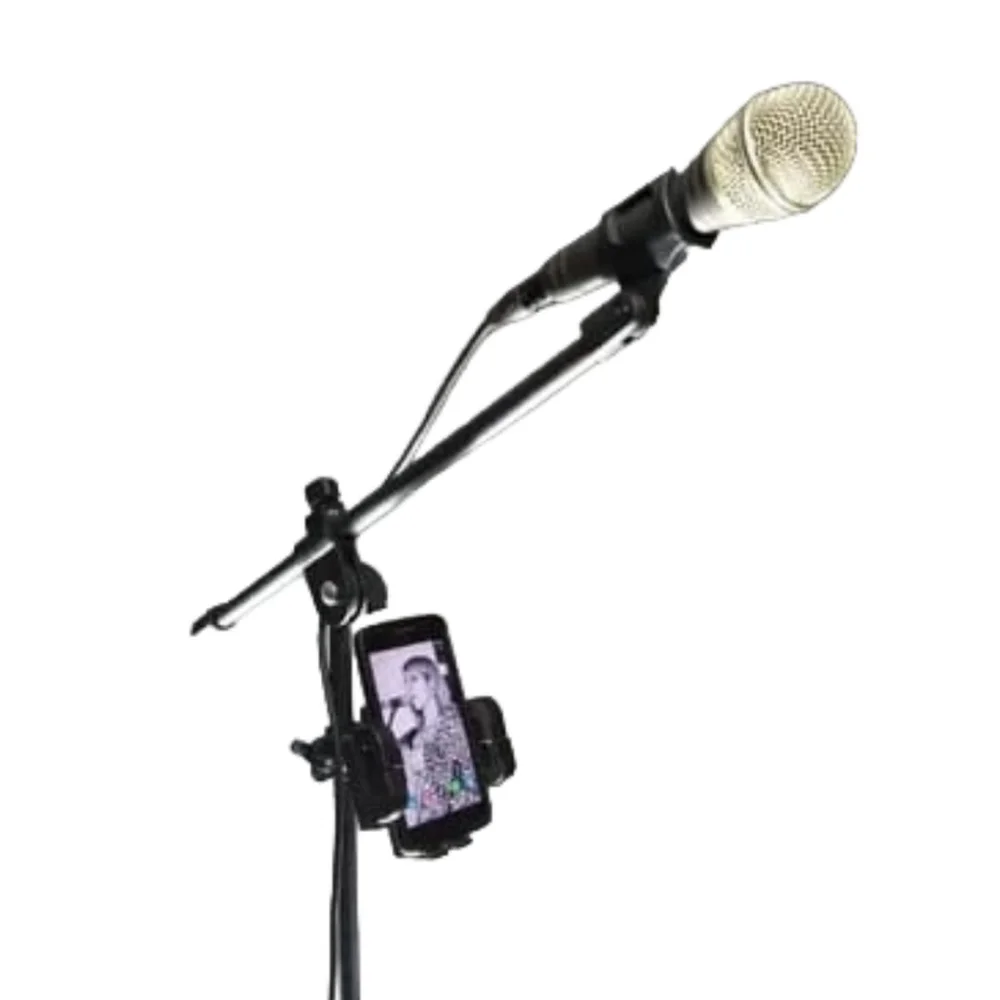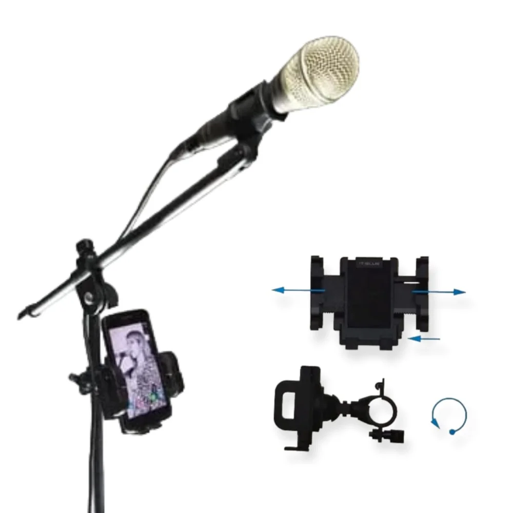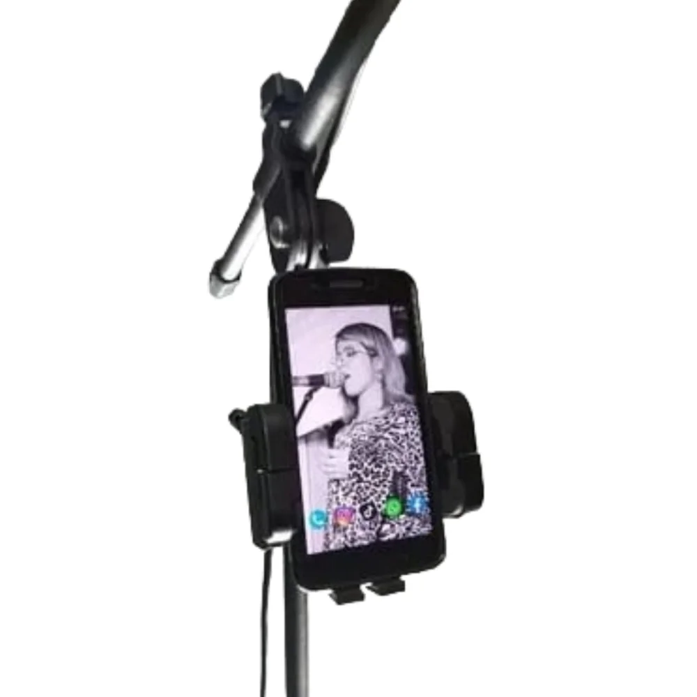 Com esse suporte vc poderá posicionar seu smartphone/celular em um pedestal de microfone ,\n dessa forma terá as letras , cifras , repertórios com fácil acesso e visualização .\n ideal para músicos , cantores , palestrantes e etc ...\n material de boa qualidade .\n simples porém muito funcional.