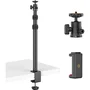 Suporte reto multiuso- componentes: 1 x barra telescópica (46,5 cm - 124 cm)1 x morsa (abertura máxima: 5 cm)1 x cabeça esférica panorâmica removível de 360.º, com rosca 1/4 "1 x presilha para celular (abertura 5,58 - 9,9 cm), com duas roscas 1/4" e sapata- ocupa pouco espaço na superfície.- rápida montagem. Leve e portátil- capacidade de carga: 3 kg- material: alumínio- cor: preto- ideal elevar celular, câmera dslr, webcam, iluminador, ring light, entre outros, em superfícies como mesas.obs.: não acompanha qualquer aparelho eletrônico!