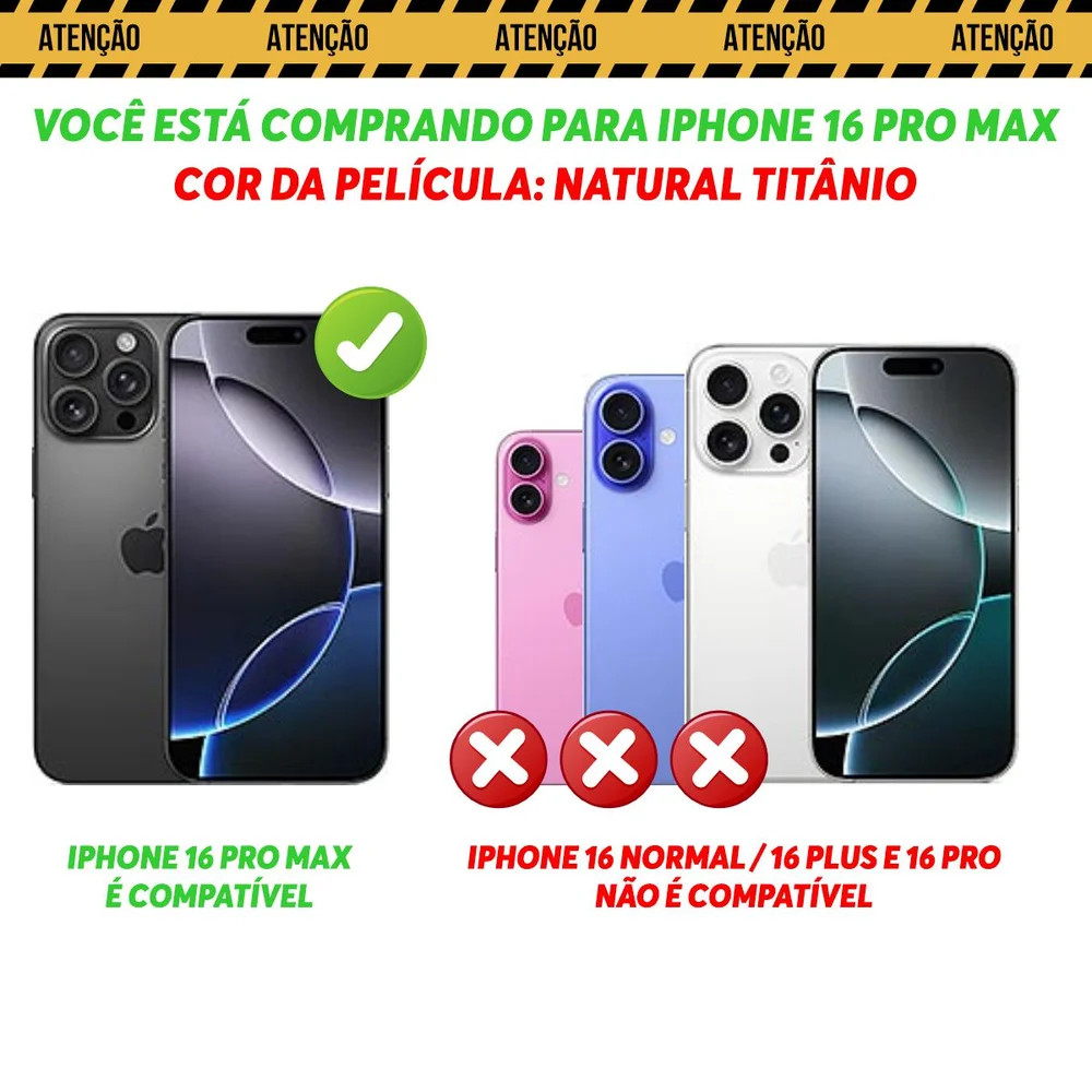 Pelicula Protetora De Câmeras Compatível Com Iphone 16 Normal 16 + Plus 16 Pro E 16 Pro Max Modelo E Cor:16 Pro Max Natu