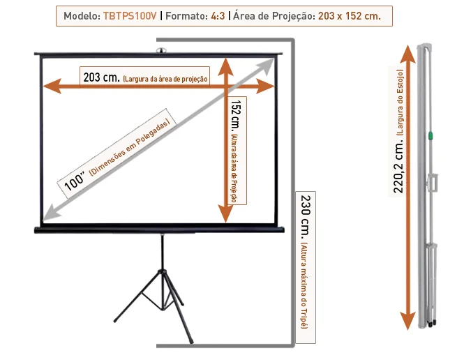 A tela de projeção retrátil tripé tbtps100v é a escolha ideal para quem busca um produto prático e de alta qualidade, unindo facilidade de instalação, portabilidade e desempenho superior para ambientes corporativos, educacionais ou residenciais. Características técnicas: modelo: tbtps100v área de projeção: 200 x 150 cm dimensões do estojo metálico: 05 x 05 x 213 cm altura máxima do tripé: 230 cm dimensões em polegadas: 100" formato: 4:3 (padrão corporativo) bordas: 2,5 cm laterais; 2,5 cm inferior e superior tecido: matte white 1.1 garantia: 12 meses características adicionais: mecanismo de molas com sistema multi paradas: garante ajustes precisos, permitindo o encaixe perfeito da imagem e a adaptação ao espaço disponível. montagem rápida e simples: o tripé ajustável possibilita a personalização da altura e posição da tela de forma prática e rápida. portabilidade e versatilidade: produto leve e fácil de transportar, ideal para salas de reunião, salas de aula, igrejas, treinamentos e outros ambientes. material de alta qualidade: o tecido matte white 1.1 oferece uma superfície opaca e plana, reduzindo reflexos e brilho para projeções nítidas e de alta definição. benefícios e utilizações: projeção de alta qualidade com cores vívidas e nitidez superior, mesmo em ambientes com iluminação não controlada. facilidade na instalação e no ajuste, garantindo eficiência em qualquer configuração. design robusto e durável, com estojo metálico protegido por pintura eletrostática anticorrosiva. versatilidade para uso em diversas aplicações, proporcionando uma experiência audiovisual imersiva. transforme suas apresentações com qualidade e praticidade! Adquira agora a tela de projeção retrátil tripé tbtps100v e leve uma experiência visual excepcional para o seu ambiente.