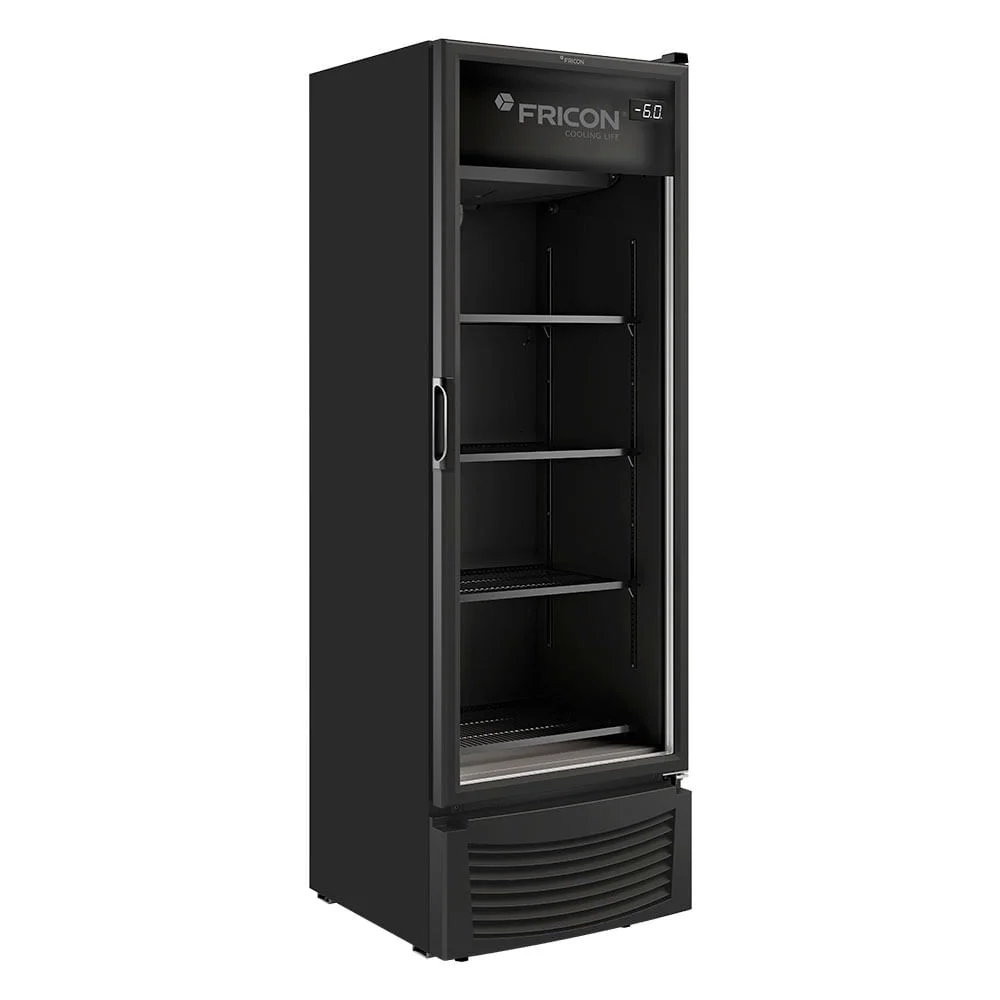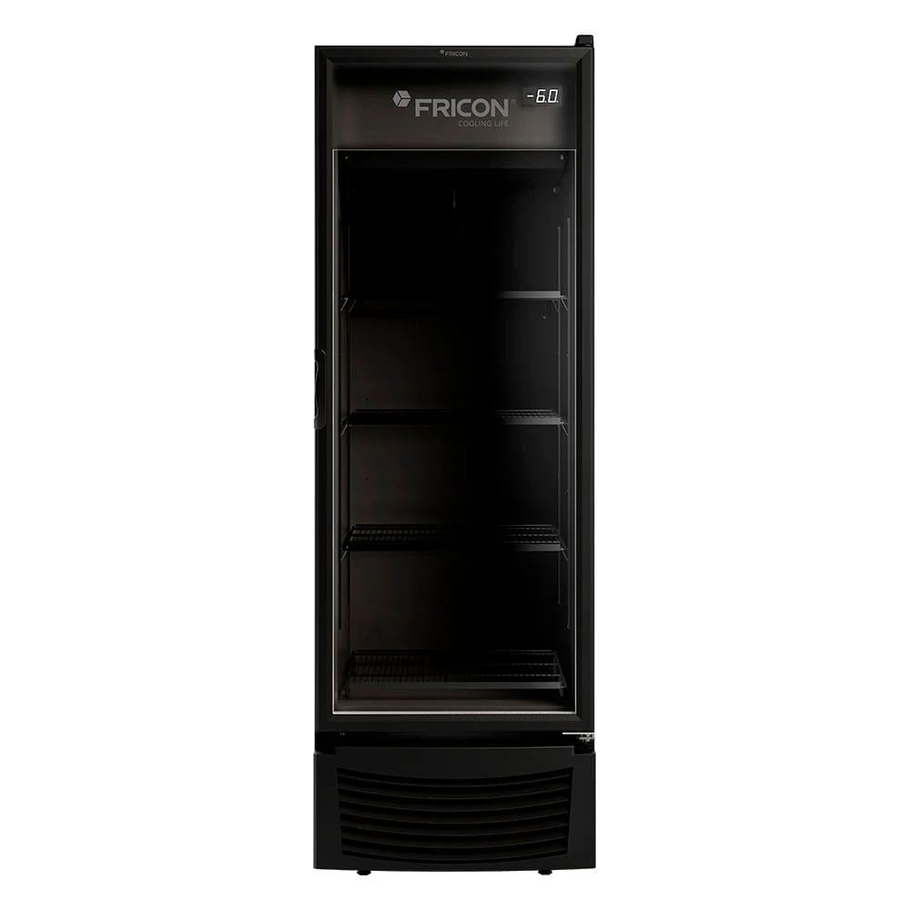 cor : total black peso : 105kg capacidade de armazenamento : bruta: 433l controle de temperatura : automático faixa de temperatura : -6 / -4 / 0 / +2 cor : total black marca : fricon altura (cm) : 196,5 largura (cm) : 66,7 profundidade (cm) : 64 gás refrigerante : r290 consumo ( w ) : (kwh/24h): 4,32 ciclo : frio crossdocking-b2w : 2 código modelo : vcfc433v total black