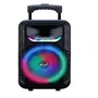 bluetooth 5.0, usb, cartão de memória tf e entrada aux, você pode reproduzir suas playlists favoritas de diversas fontes. Além disso, o sistema de iluminação led colorida integrada cria uma atmosfera vibrante e envolvente. Leve e fácil de transportar graças às rodinhas e alça, ela também possui uma bateria recarregável de longa duração, proporcionando até 6 horas de música ininterrupta.