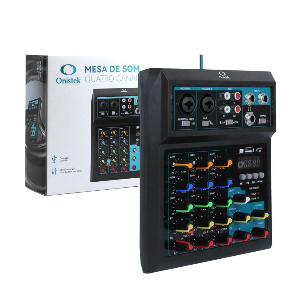 Mesa De Som Usb Profissional 4 Canais, Com Phantom Power 48v, Efeitos Reverb Delay, Bivolt
