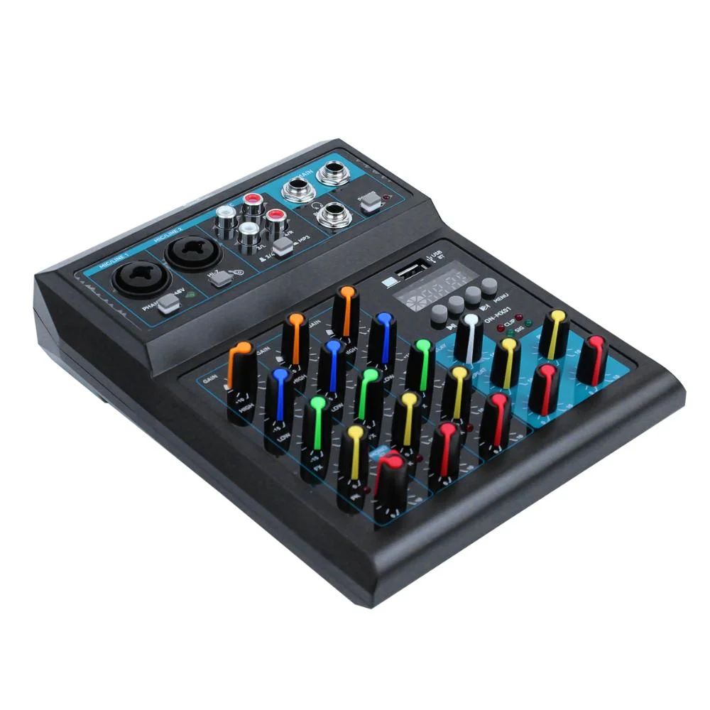 Tenha uma mesa versátil que pode te acompanhar em setups móveis ou estúdios caseiros! A Mesa de Som 4 Canais Profissional Equalização 48V USB Bivolt é ideal para músicos, criadores de conteúdo, podcasts e transmissões ao vivo.