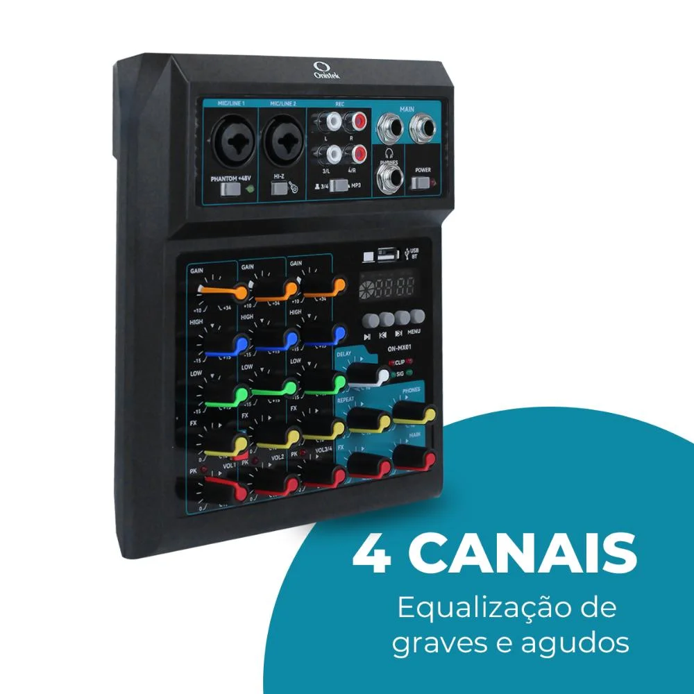 Mesa de Som 4 Canais Profissional Equalização 48V USB Bivolt