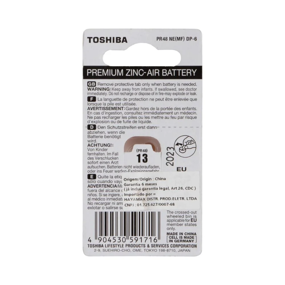 Pilha Auditiva Toshiba Pr48 13 Cartela Com 6 Pilhas
