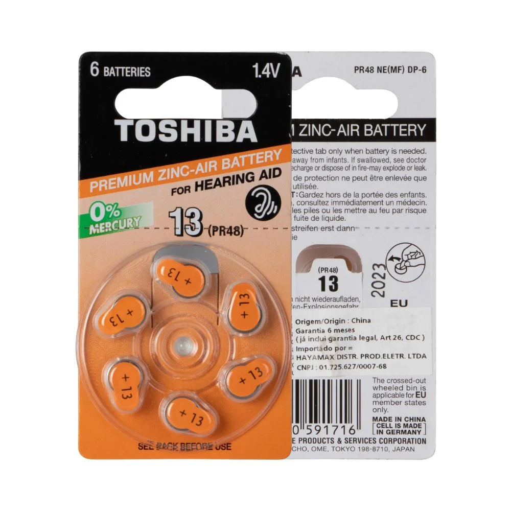 especificacoes: marca: toshiba embalagem: com 6 unidades tamanho: 13 (pr48) tipo: auditiva voltagem: 1.4v garantia: 6 meses