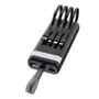 conta com 4 saídas universais: usb, micro usb, type-c e lightning — compatível com praticamente todos os dispositivos do mercado, seja android ou iphone. Além disso, suporta carga rápida com saída de até 3.1a, oferecendo uma recarga turbinada para seus aparelhos.