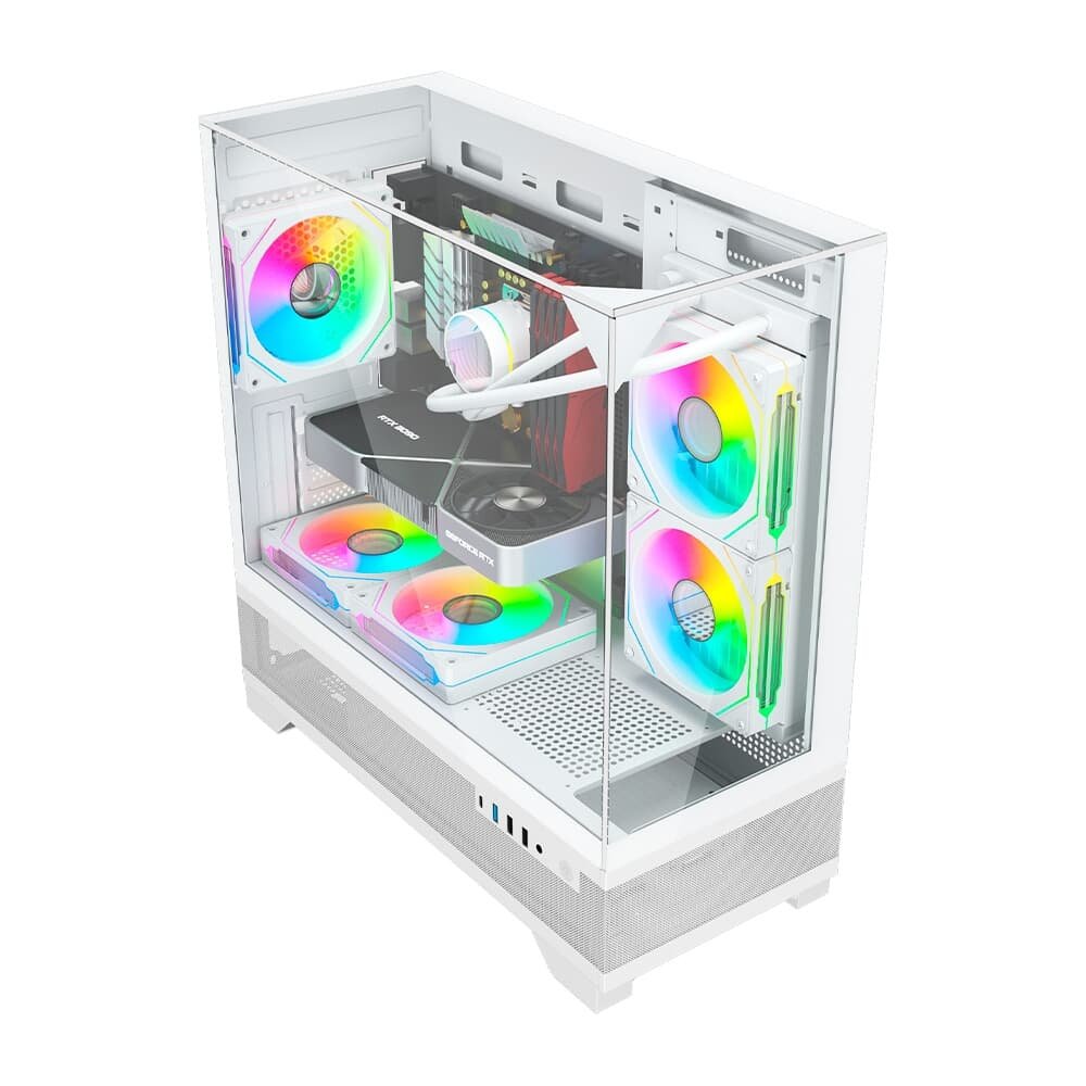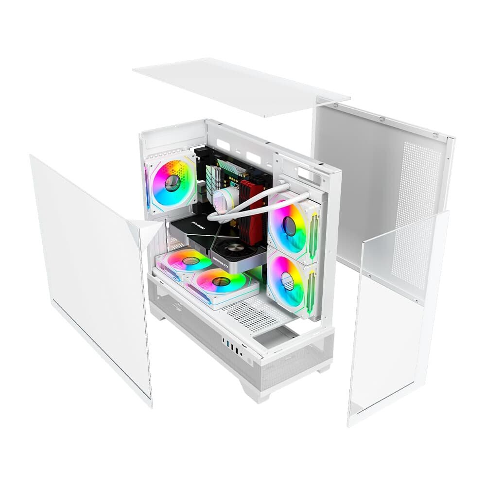 Gabinete Liketec Gamer Mahal, Sky Tower, M-ATX, Lateral, Frontal e Teto em Vidro Temperado, Sem FANs, Snow - LC-MT-MAHAL-2094