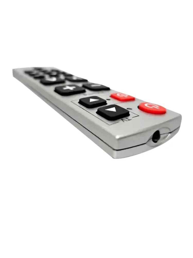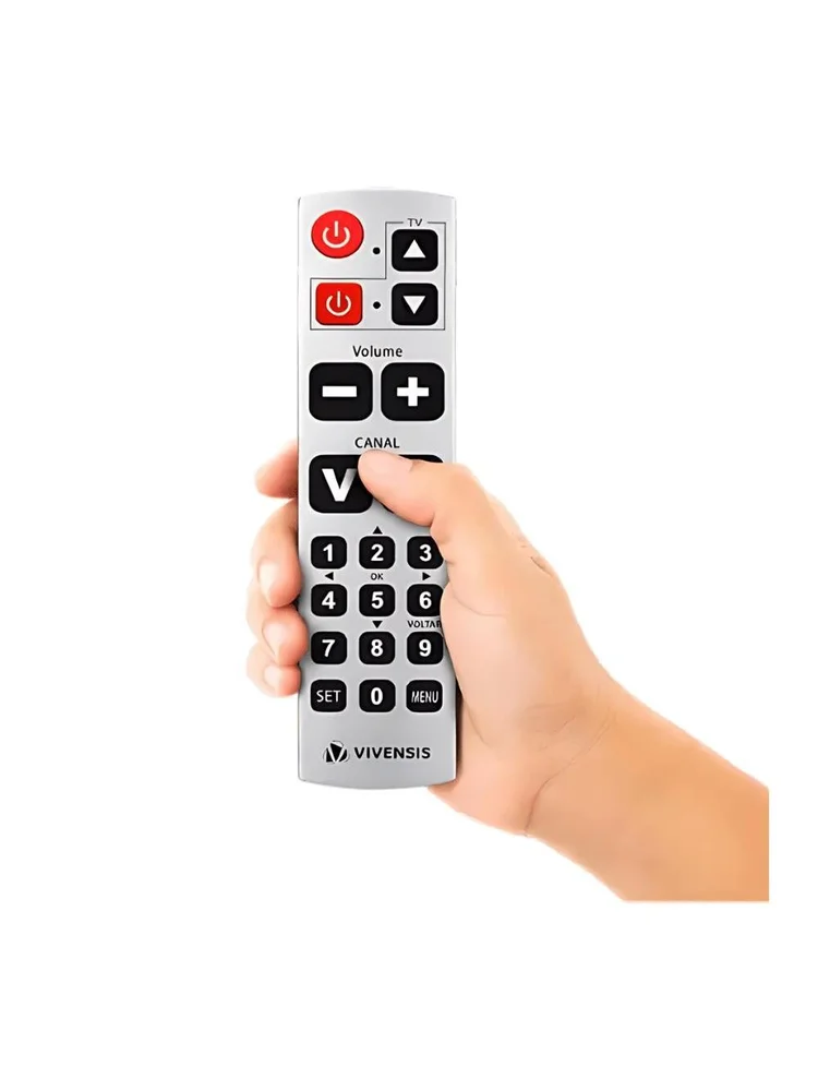 Descricao facilite sua experiencia com a tv. 20 teclas, modelo maior, funcao inteligente, led indicador. Funciona com pilhas aaa (nao inclusas). Controle simplificado e ergonomico: menos teclas, design intuitivo e feedback tatil. Acessibilidade aprimorada: compatibilidade com interface senior, teclas legiveis e facil programacao. Durabilidade e estilo unico: construcao robusta, design cinza e teclas pretas para destacar. Compativel com a interface senior, ergonomico e robusto. Teclas grandes e legiveis, durabilidade e qualidade de construcao. Facil programacao para clonar as funcoes do controle remoto da tv. Botoes de facil acesso, incluindo volume, canais e ligar/desligar. Textos com fontes maiores, cores de alto contraste e bom espacamento para facilitar a leitura. O design cinza com teclas pretas destaca-se da maioria dos produtos de mercado. Funcao inteligente: controle seu receptor e sua tv. Teclas grandes. Led indicador.*imagens meramente ilustrativas.especificacao tecnica pilhas aaa (nao inclusas).cor prata.garantia 6 meses.dimensoes 189,5x47,2x25mm.
