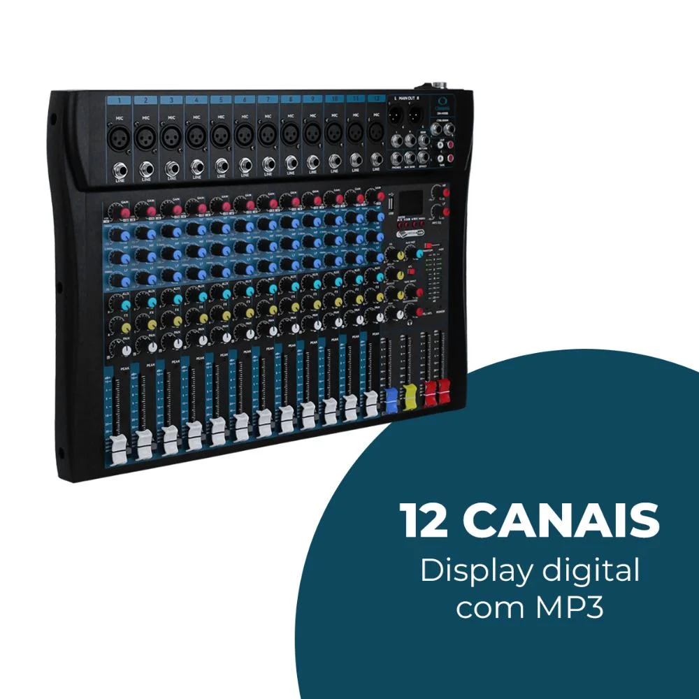 Mesa de Som 12 Canais Profissional Display MP3 USB