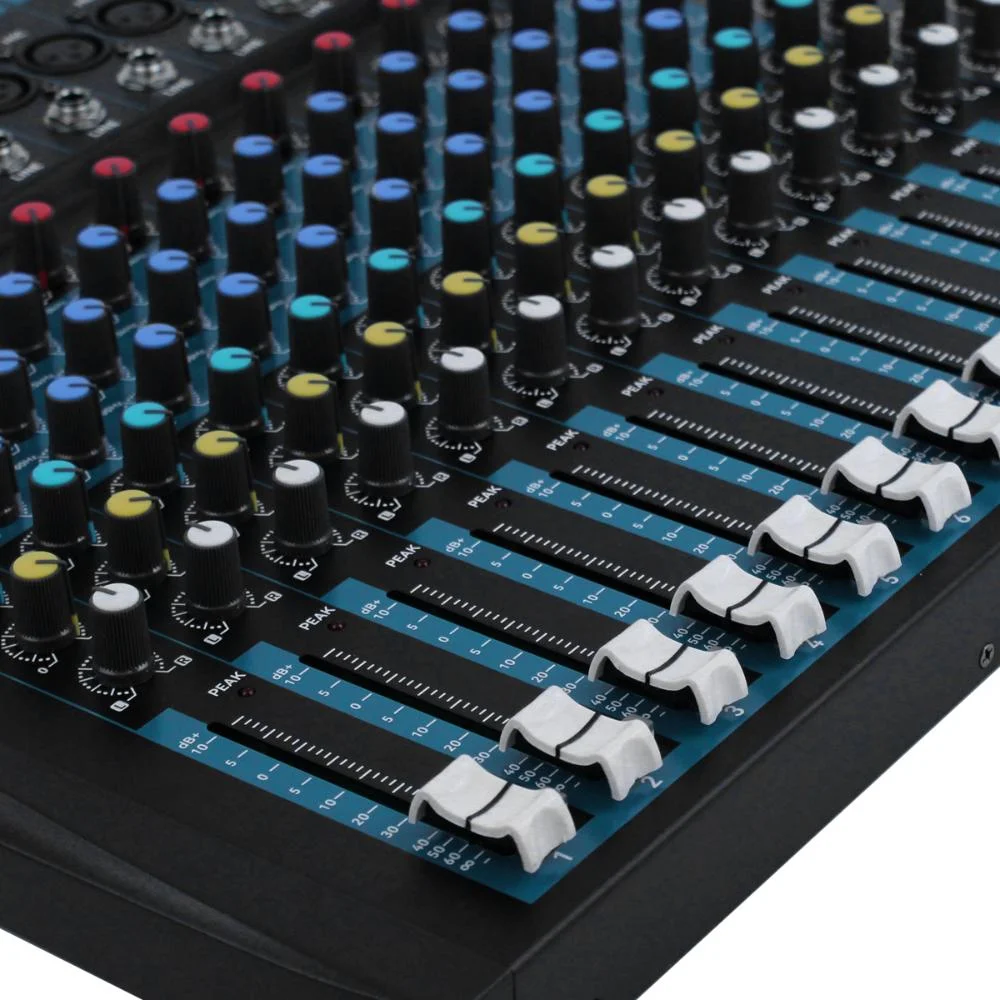 Ideal para estúdios, gravações e eventos ao vivo com mixagem precisa, esse modelo de mesa de som possui 12 canais, phantom power 48V, display MP3 e entrada USB.