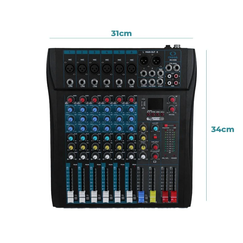 Mesa de Som 6 Canais Profissional Com Phantom Power 48V USB