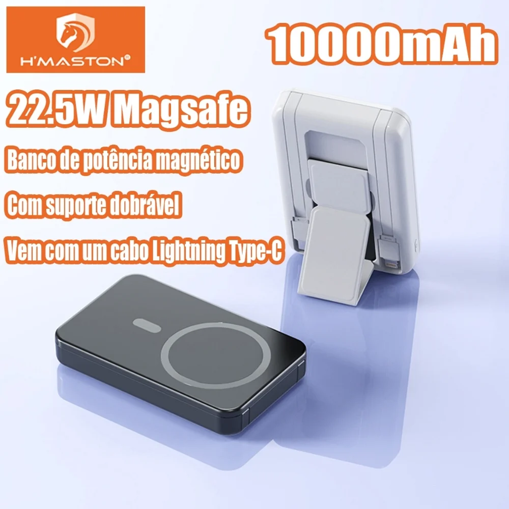 carregamento por indução – sem fios, mais praticidade!\n capacidade de 10000mah – energia para várias cargas.\n compatível com iphones e outros dispositivos com carregamento por indução.\n conexão magnética segura – alinhamento perfeito para um carregamento estável.\n tecnologia inteligente – chip que ajusta a corrente para maior eficiência.\n carregamento rápido – saídas de até 22.5w para máximo desempenho.\n design compacto e portátil – leve e fácil de transportar.