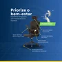 O apoio de cabeça ajustável 3D oferece suporte ao pescoço, reduzindo a pressão e proporcionando mais conforto. O apoio lombar bidirecional suspenso se adapta à curvatura natural da coluna, promovendo um alinhamento ideal e reduzindo o impacto na região lombar. Além disso, os apoios de braço ajustáveis em altura e giro oferecem flexibilidade para diferentes posições, garantindo um suporte personalizado.