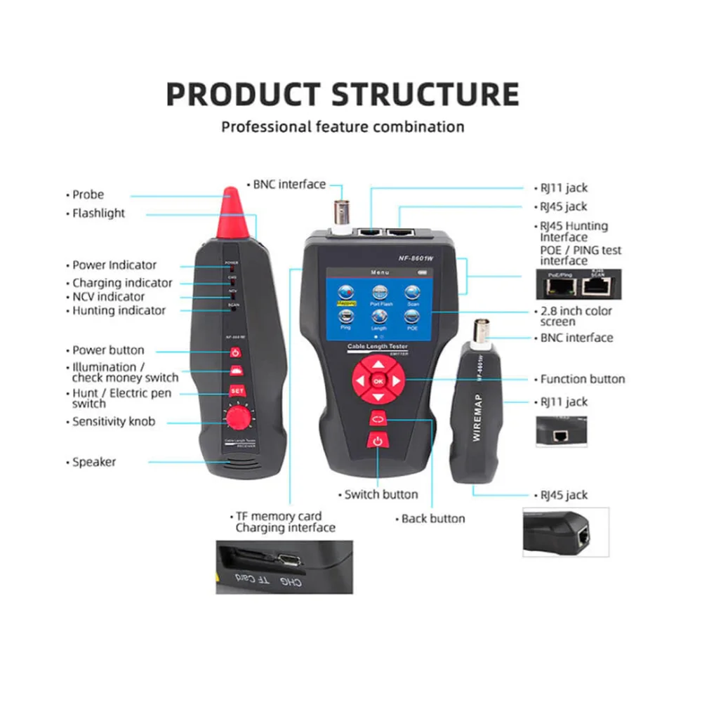- Um dos maiores produtos fabricados pela famosa NOYAFA, atualiza a experiência de teste e rastreamento de rede com precisão e conveniência.