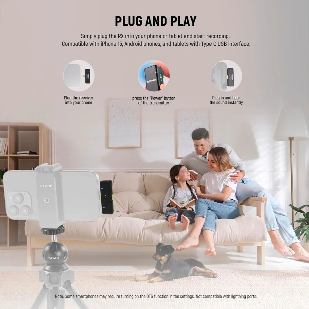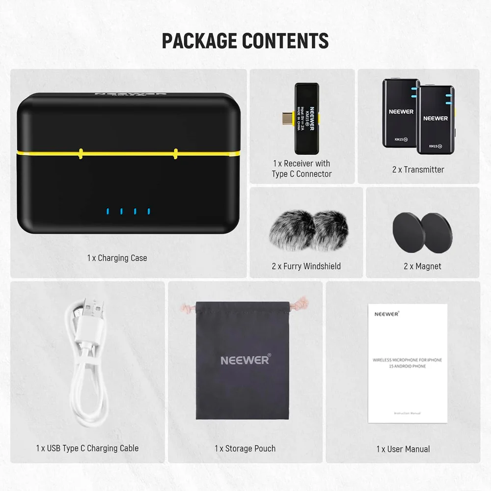 Microfone lapela sem fio neewer km15 preto, compatível com iphone 15, android e ipad, conexão usb-c, cancelamento ruído, transmissão longo alcance, estojo carregamento, ideal para vídeos, entrevistas e podcasts 1. Microfone profissional para gravações de alta qualidade o neewer km15 é um microfone sem fio de lapela ideal para criadores de conteúdo, transmissões ao vivo, podcasts e entrevistas. Compatível com dispositivos usb-c, como iphone 15, ipads e celulares android, oferece captação de áudio profissional e portátil. 2. Captação omnidirecional e áudio nítido cada transmissor conta com um microfone condensador omnidirecional embutido, garantindo gravações com excelente clareza e fidelidade sonora. A entrada p2 de 3,5 mm permite conectar microfones com fio adicionais para mais opções de captação. 3. Cancelamento de ruído ativado com um toque equipado com um avançado chip dsp e para-brisas macios, o microfone reduz automaticamente ruídos indesejados. Com apenas um clique, a função de cancelamento de ruído elimina sons de fundo, tornando-o perfeito para gravações externas e ambientes movimentados. 4. Transmissão estável e bateria de longa duração utilizando tecnologia de conexão sem fio 2.4g, suporta transmissão de áudio com alcance de até 200 metros em áreas abertas, com baixa latência. A bateria de cada transmissor dura até 9 horas, enquanto o estojo de carregamento de 2000mah permite até três recargas adicionais. 5. Plug & play – fácil e rápido de usar basta ligar os transmissores e conectar o receptor ao dispositivo usb-c para que o emparelhamento automático ocorra instantaneamente, sem necessidade de aplicativos ou configurações adicionais. Compatível também com tablets equipados com usb-c. Garantia 90 dias.