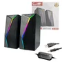 \n caixa de som alto falante rgb bluetooth 6w - computador notebook p2 usb\n marca: eletromex\n \n -som nítido e aprimorado. Equipado com unidade de som avançada com núcleo estéreo de canal 2.0 de gama completa, proporcionando uma experiência auditiva superior.\n -iluminação rgb controlada por toque com 6 modos diferentes, incluindo a opção de desligar a luz.\n -design urbano moderno minimalista com estilo dinâmico e sofisticado.\n -controle de volume de fácil acesso.\n -plug & play para ampla compatibilidade com pc, tv e laptop. Alimentado por usb com cabos de áudio e microfone de 3,5mm.\n \n especificações técnicas :\n - excelente qualidade sonora e alta potência\n - com controle de volume\n - iluminação led rgb em 6 modos\n - conexão de áudio p2 3,5mm\n - conexão bluetooth v5.3\n - ideal para músicas, filmes, jogos, etc...\n - compatível com pc e notebook\n - potência: 3w*2 (6w)\n - sensibilidade: 650mw