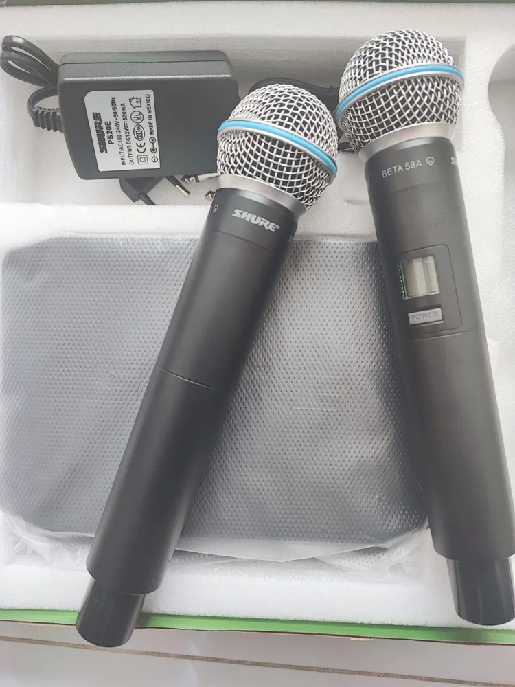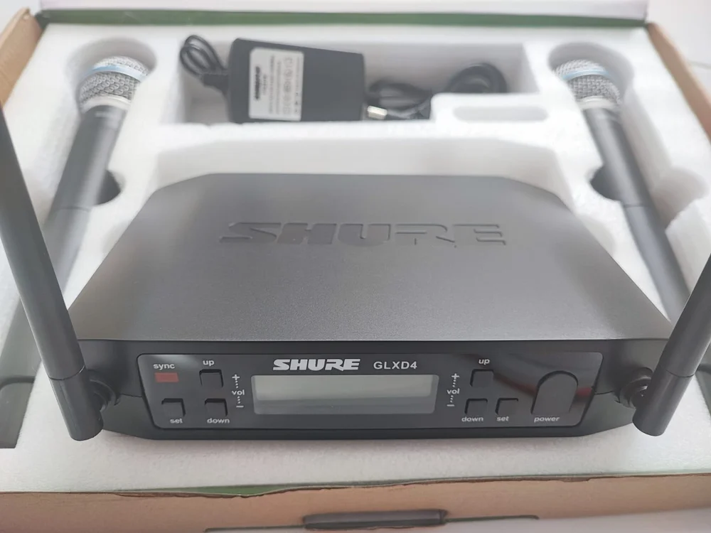 Microfone shure profissional glxd4 beta58a duplo original bastões em metal