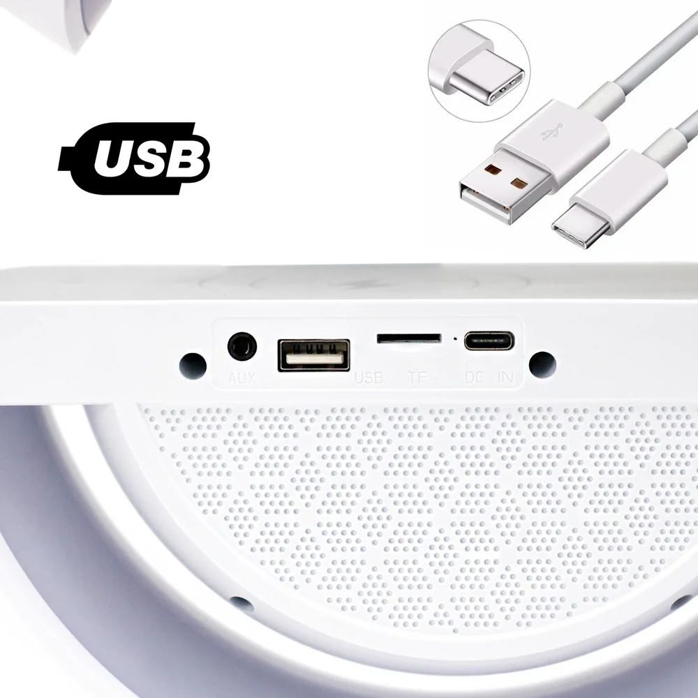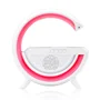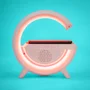 Multifuncionalidade: Combina caixa de som, carregador sem fio e luminária em um único dispositivo.