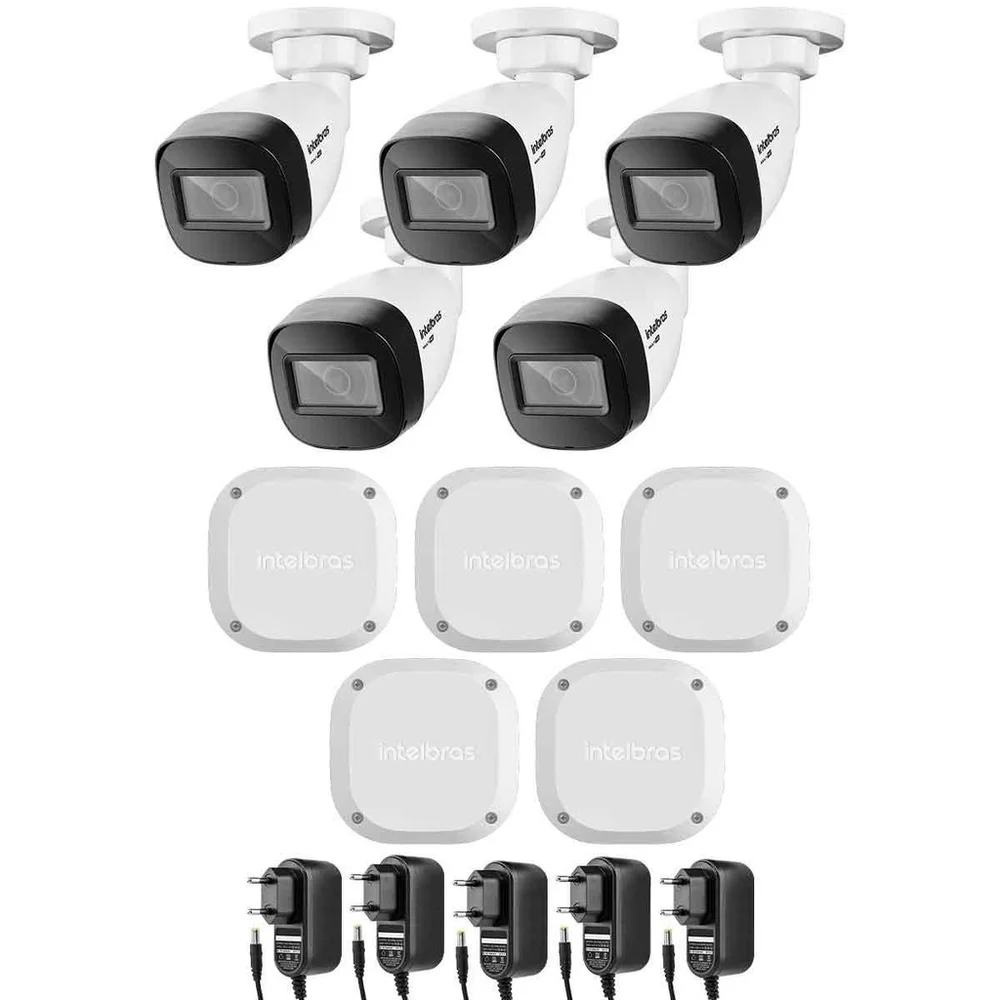 Kit 5 Câmeras Intelbras Vhd 1130 B Hd 720p Infra De 30m Ip67 + 5 Caixas Cftv Vbox 1100 Externo Ip66
