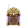 rádio portátil retro junkbox possui painel frontal com botões de comando apara acessar as funções com ótima qualidade de som com conexão usb, bateria recarregável de ótima recepção.