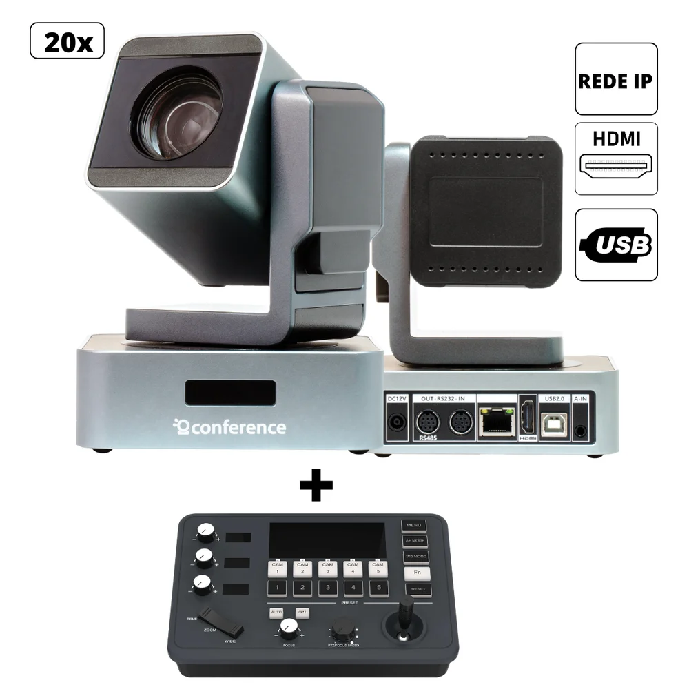 Kit 2 Câmeras Mini PTZ 20X Full HD com Joystick – Solução Profissional para Streaming, Videoconferência e Produção de Conteúdo