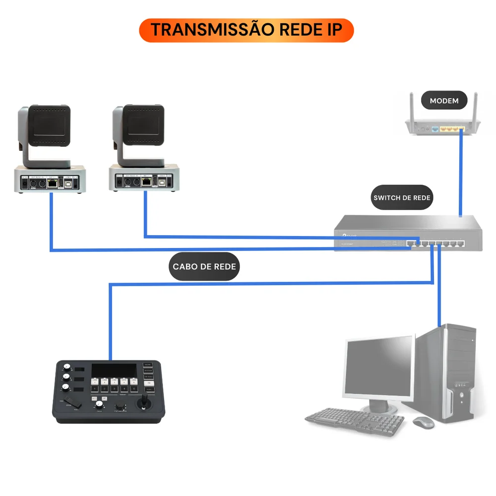 Transforme suas transmissões ao vivo com o Kit 2 Câmeras Mini PTZ 20X CHURCH IP + Controle Mini!
