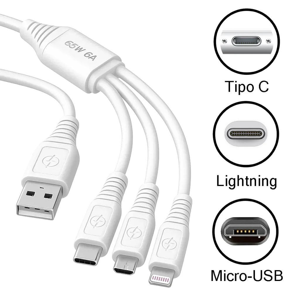 • uma ponta para cada dispositivo: carregue até três ao mesmo tempo